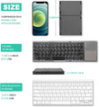 【Folding Bluetooth Keyboard & Free Stand Holder】Extremely thin design of the portable folding keyboard allows you to fold it up and put it in your pocket or bag without taking up too much space. The free stand holder, best companion for folding keyboard, gives you perfect screen angle. Near-standard size design provides accurate, fast typing, just like the desktop keyboard you are used to. Quiet keys also allow you to focus on your work. Perfect gift for travel and business trips!